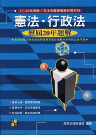 - 一般註:封面題名:憲法.行政法:歷屆20年題解 附錄:七十二-八十八年<<憲法>>歷屆試題及相關條號.解答憲法索引等2種